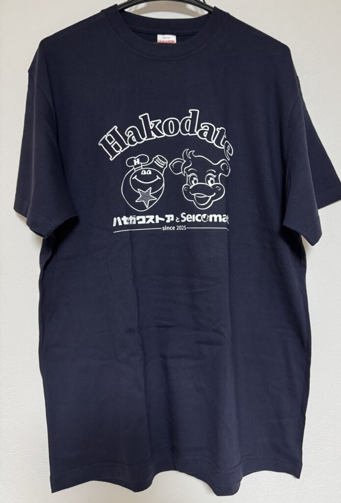 ハセガワストアとセイコーマートのキャラクターが描かれたコラボTシャツも販売。
