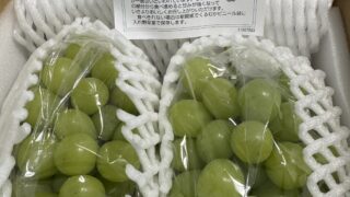 3月権利 <株主優待>2588 (株)プレミアムウォーターホールディングス カタログギフト 5,000円相当からの選択制になっており、シャインマスカット(先着2,000セット)を選択しました。2房、1kg分です。甘くて美味しかったです。カタログギフトは、先着順の申し込みとなり、お米(4kg、先着600セット)は2,3日で申し込みが終了になっていました。v 2025.10.09 3月権利